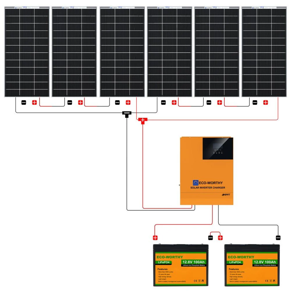 1170W 24V (6x Bifacial 195W) Complete MPPT Off Grid Solar Kit