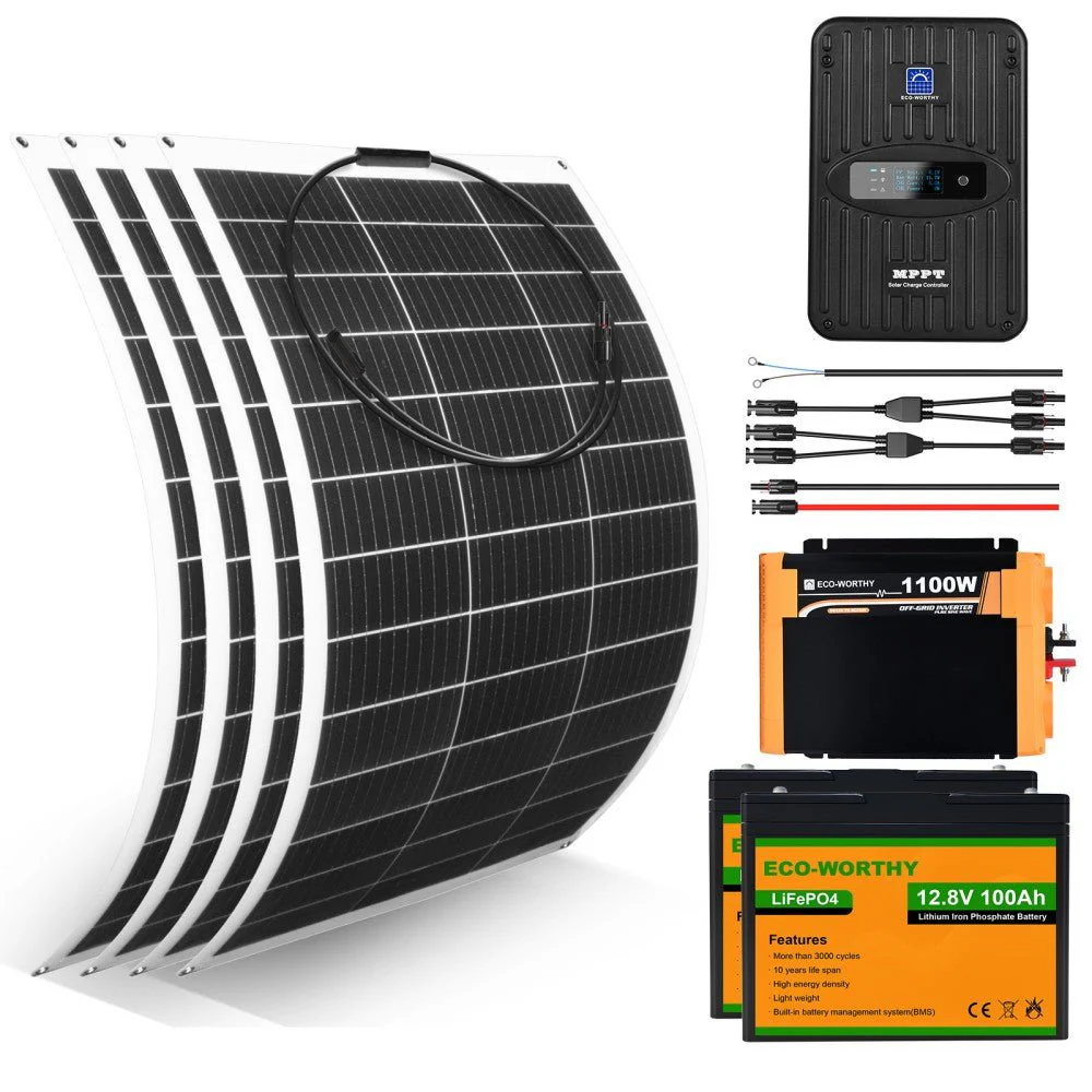 130W 260W 520W 12V 1/2/4-Panel Off Grid Solar Kits with Lithium Battery